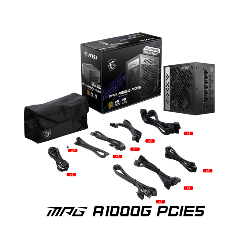 ATX (24 pin):1; EPS (4+4 pin):2; PCI-E 5.0 (16 pin):1 (600W); PCI-E (6+2 pin):6; SATA (15 pin):12; MOLEX (4 pin):4; FDD (4 pin):1 |